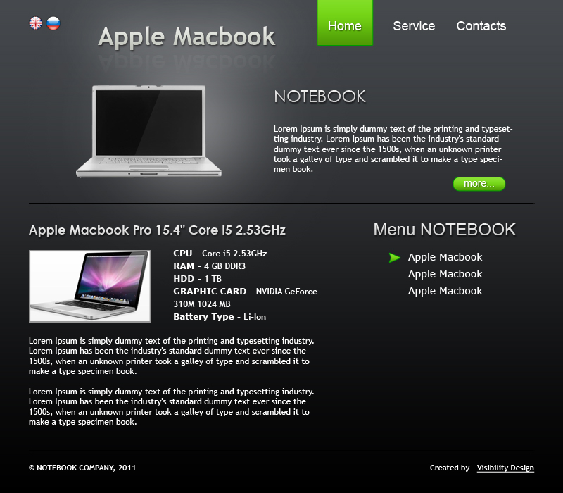 Разработка сайта визитки для товаров "Apple Macbook". Просмотр