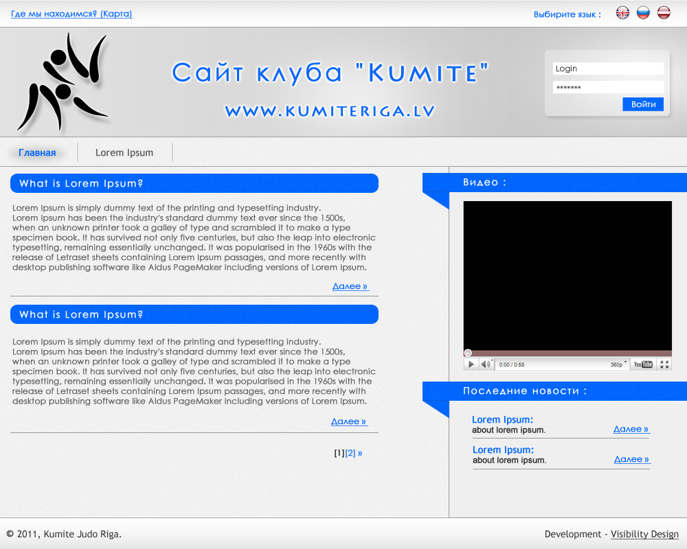 www.kumiteriga.lv - Разработка сайта для клуба по дзюдо "Kumite Judo Riga". Просмотр